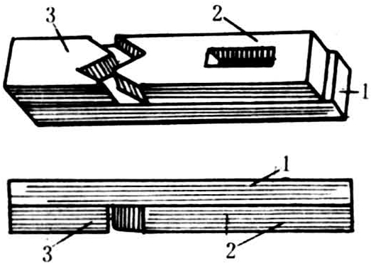 安在巢门口以防盗蜂侵入的器具。传统的预防盗蜂方法是缩小巢门。20世纪30年代黄子固设计r一种简易的防盗器具(图1),由一块面板和两块长短不一,一端各带有相对的粗锯齿形缺口的底板组成。短底板固定在面板的一端,长底板中间开有细长槽,用大头铁钉从槽间穿入钉在面板的另一端,以便调节两底板之间的锯齿形巢门通道的大小。在盗蜂初起时安在弱群的巢门口,盗蜂要进巢门口,必须通过长而弯曲的通道,故不易侵入。这两块底板之间的距离也可以缩小,直至不留有通道。20世纪80年代周崧创造了另一种简易的预防盗蜂工具,由真门和诱导门组成,真门供本群蜜蜂出入。诱导门为盒状,以窄的一端插入巢门,宽的一端有开口,开口上有挡板,诱导门窄端及其上部开有3毫米的缝隙,能使巢内气味通过开口散出,诱引盗蜂(图2)。真门和诱导门紧密并列于巢门口,巢内气味散出,本群蜂不受气味干扰自由出入,盗蜂则被气味诱引进入诱导门而又不能进入巢内。