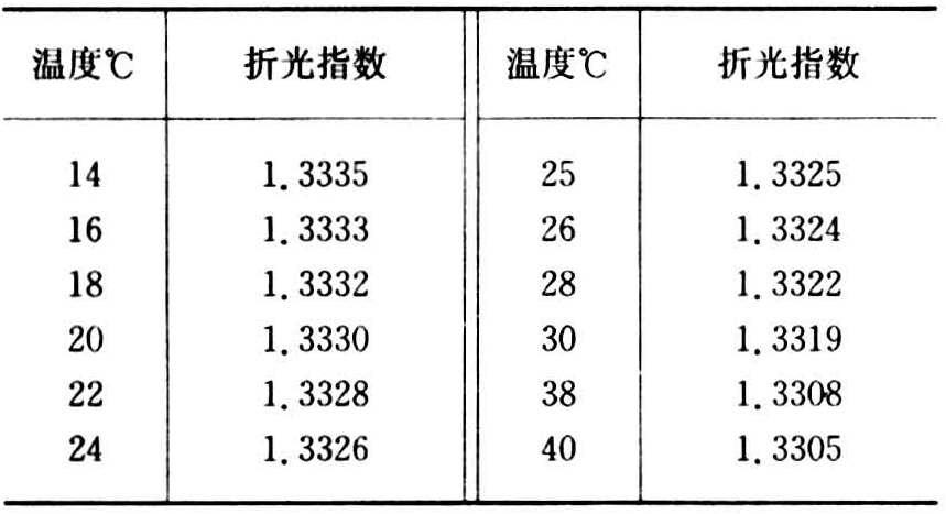 表5 蒸馏水折光指数表