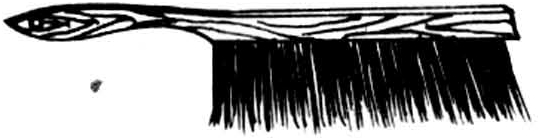 清扫巢脾及其他蜂具上蜜蜂的毛刷。其上有两三排刷毛,有较长的握手柄,全长约360毫米,嵌毛的部分约占210毫米,毛长65毫米(见图)。刷毛常用柔韧适中、不易吸水的白色鬃毛或塑料丝。使用中不时用水洗去沾上的蜂蜜,以免毛刷变硬而伤害蜜蜂。(林世龙)