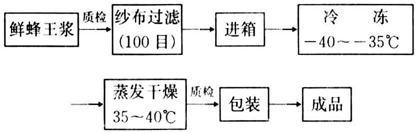 冷冻干燥是将物质在尽可能低的温度条件下迅速完成冷冻过程,使所含水分变成冰,然后在真空条件下使冰直接升华为汽,最后使物质达到干燥的目的。以这种方法将含有水分的物质干燥后,断绝了微生物赖以生存繁殖的水分,使对环境影响敏感的蜂王浆能保持其稳定性;只须持续保持干燥,就不致变质。同时,因升华过程是在真空低温条件下进行的,蜂王浆的营养和活性成分就会基本不变地被保存下来。
