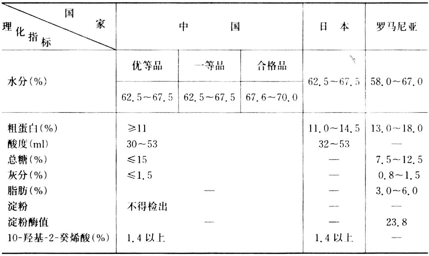 以下是中国、日本、罗马尼亚关于蜂王浆的理化指标。(见表)