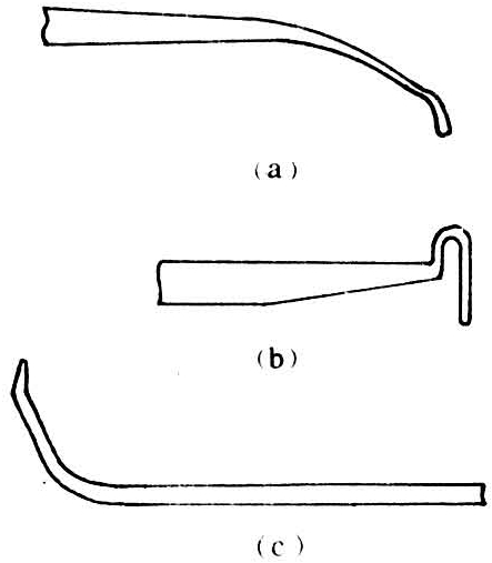 图2 螫针钩(a)、腹钩(b)和探针(c)的形状