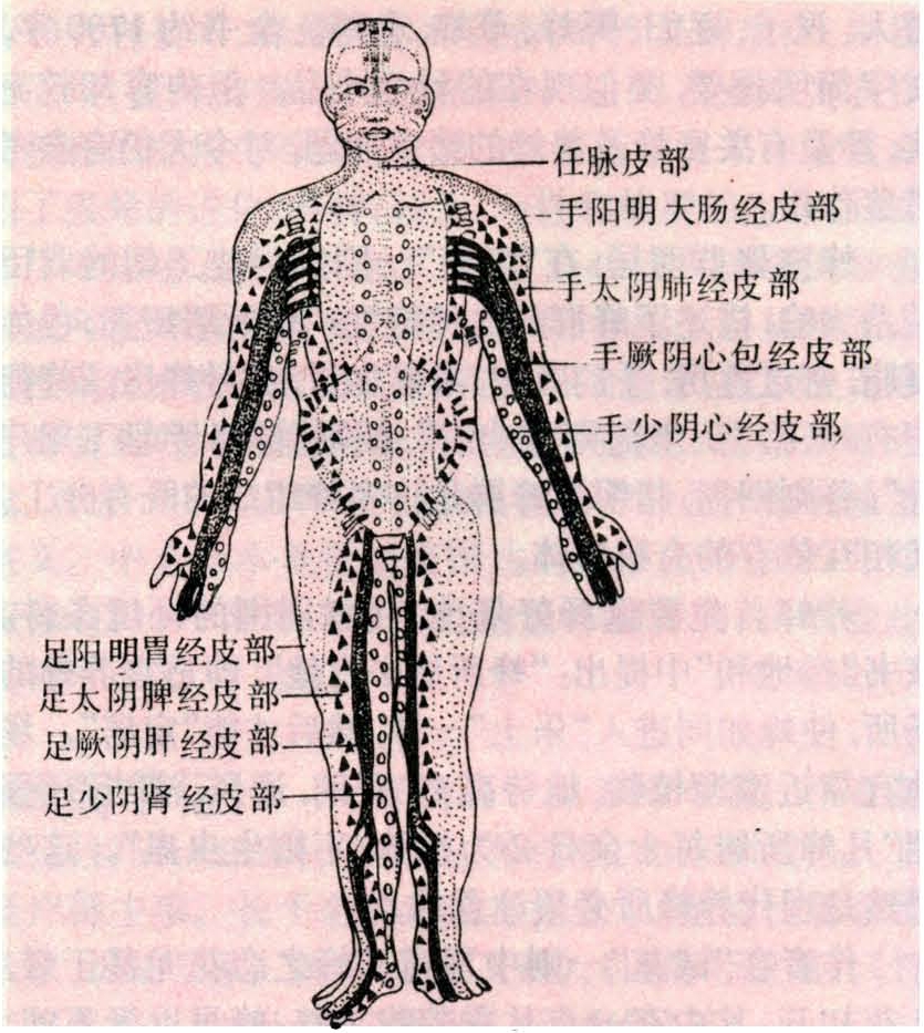以工蜂螫器官为针具,对人体经络穴位施行一定刺激防治疾病的方法,是一种复合型刺灸法。简称蜂针。蜂针的机械刺激,作用于十四经皮部(图1、图2)和穴位,借以疏通经络,调和气血,螫刺时注入皮内适量全蜂毒(含多种活性肽、酶、生物胺类,以及13种以上的挥发性物分(见蜂毒),具有经穴注射的药理作用;蜂针继发局部潮红充血,具有温灸效应,达到温通经脉、扶阳散寒的目的。