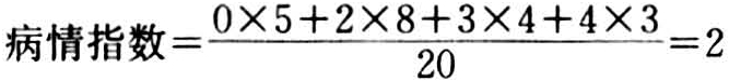 例 共检查20群蜜蜂,其中0级5群,2级8群,3级4群,4级3群。