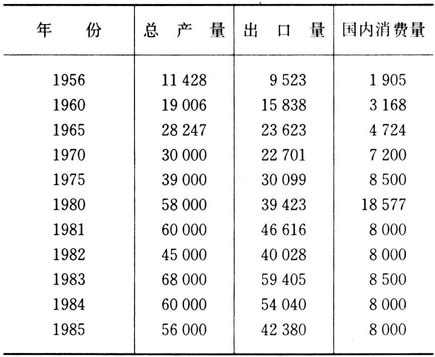 1989年全国养蜂240万群,产蜂蜜4.85万吨,出口3.82万吨,主要销往联邦德国(占75%)、美国、英国、荷兰和日本。50年代以来墨西哥的蜂蜜产销情况见表。
