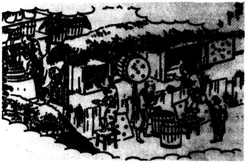 分蜂、雄蜂、蜡螟,以及如何取蜜和制蜡等。这是个手抄本,因此影响范围不大。直到19世纪中期,日本只有少量专业养蜂户。大藏永常著《広益国産攷》1859年出版,书中记载了饲养日本蜂和取蜜的方法。田中芳男1872年撰写的《蜂蜜一览》是一部对传统养蜂技术和蜜蜂科学知识的总结性著作。(图1、图2) 图1 日本《広益国産攷》插图之一:养蜂图 日本本土的蜜蜂是日本蜂。