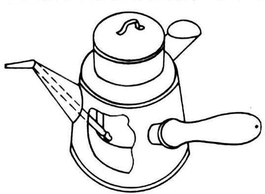 融化蜂蜡的小双层水浴锅。供将巢础粘在巢框上梁沟槽内或蘸制蜡碗时融蜡之用。这种小双层锅是用马口铁制成一大一小的两个形状各异的容器。外壶盛水,内壶贮蜡,两者套合时,成双层水浴锅。外壶近底部有倾水口,近上口有木柄握手。内壶圆柱形,套入外壶,与外壶底间距约20毫米。内壶配有一个套盖(见图)。用时把熔化好蜂蜡的内壶提出,待蜡温下降至70℃左右时,便可用以进行固定巢础。(吴发辉)