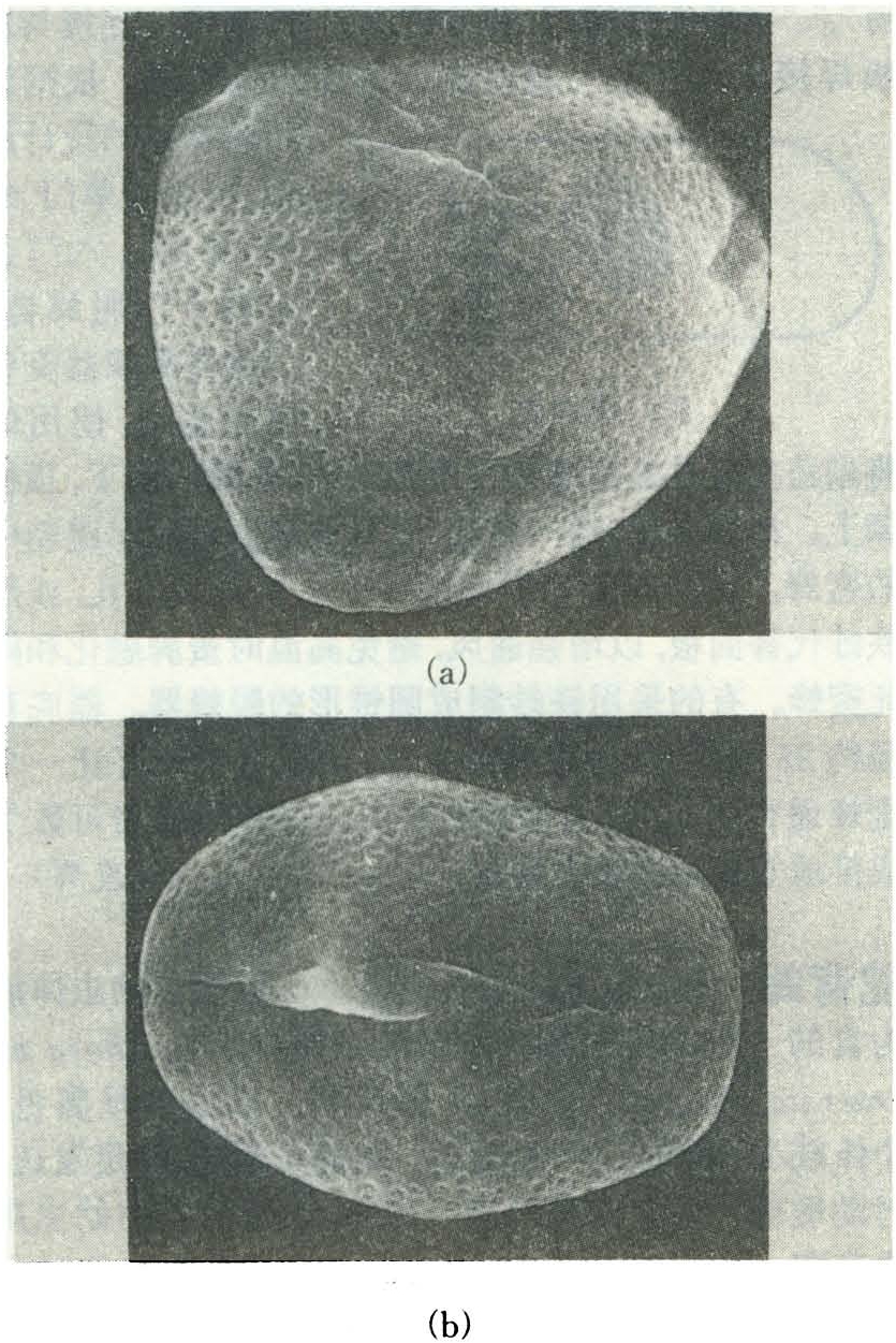 田菁花粉粒长球形,赤道面观为长椭圆形,极面观为3裂片状或钝三角形(图2)。大小为29.1(25.4~34.2)×19.4(16.7~22.6)微米。具3孔沟,沟长,内孔膜外突明显。表面具网状雕纹,网孔圆形或椭圆形,大小约0.5~1.0微米,网脊宽约0.4~0.6微米。