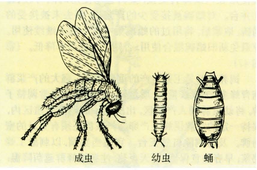 以蜜蜂幼虫体液为食的一种内寄生蝇。别名隆肉蝇。学名Phora in-crassata Meigen。双翅目,蚤蝇科。成虫体呈黑色,个体较小,体长仅3~4毫米。胸部大而隆起,足发达,行动敏捷。通常由巢门潜入蜂箱,在未封盖的幼虫房内产卵。卵暗红色,经3小时后,孵化为幼虫,穿透蜜蜂幼虫体壁进入体内,吸吮体液,经六七天后离开蜜蜂尸体,咬破巢房盖,爬出巢房并潜入箱底脏物中或土壤中化蛹,经过12天后由蛹羽化为成虫(见图)。宜饲养强群,保持蜂多于脾或蜂脾相称,以抵御驼背蝇潜入蜂群;保持蜂箱内清洁,经常清除蜂箱底蜡渣、杂物等并集中烧毁;经常切割蜜房的封盖,并搜集化蜡。对于严重的受害群,可用烟叶或杀螨熏烟剂进行药物防治。将烟叶或熏烟剂装入喷烟器内,点燃后,从蜂箱门口向箱内喷烟3~4次,3~5分钟后,收集落下的驼背蝇集中烧毁。(冯峰)