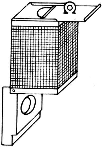 临时贮存蜂王的纱笼,也可用于给蜂群诱入蜂王。通常用铁纱或塑料制成。长方形,一般长约50毫米,宽30毫米,厚23毫米。上端有可放置王台的圆口,其上装有可滑动的铁片;下端装有可开关的活动食料盒(见图)。为了防止先出房的处女王破坏其他王台,在处女王出房前一日,将王台分别贮存各王笼内,装在贮王框上,放入蜂群;蜂王出房后,互相隔离,可保护蜂王。