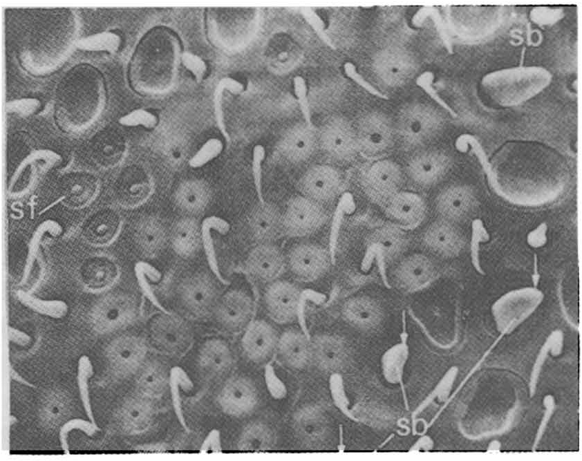 图1 工蜂触角鞭节上的感觉器官(×750)