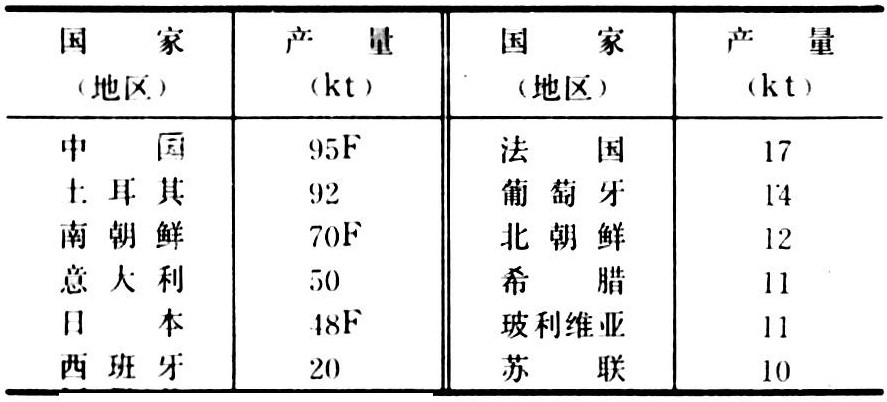 1988年世界板栗主产国(地区)产量