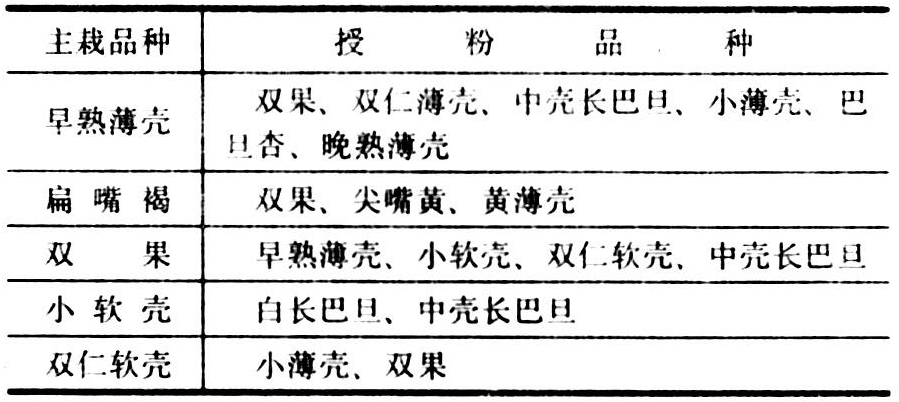 主栽品种和授粉品种表