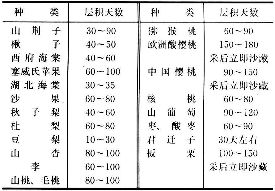 长短因树种而异,主要树种种子层积天数列于下表。