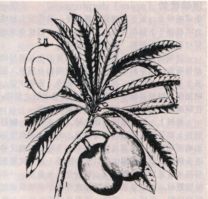 高8~12米。树皮灰白色。枝条软,多分枝,小枝圆柱形。叶互生,长圆状倒卵形,长10~30厘米,宽4~10厘米,先端钝或渐尖,基部楔形,叶面叶脉明显,叶背叶脉凸起,侧脉6~12对,叶柄长1.5~4厘米。花白色,常3~10朵簇生于叶腋;花柄花萼被黄色绒毛,花柄长2~3毫米;萼5裂,裂片圆形至广卵形,长2.5~3毫米;花冠白色,长2.5~4.5毫米;雄蕊多数;雌蕊花柱短,柱头不明显,子房圆锥形,子房及花盘被浅黄色绒毛。果球形、桃形、长卵形或纺锤形,因品种而异,横径4~5厘米,纵径4.5~5厘米,未熟果绿或绿褐色,熟时变黄;未熟果含单宁多,果肉变软为食用成熟度,熟果肉质疏松,金黄或蛋黄色,果汁甚少,有鸡蛋黄香味,无酸略甜。种子1~3枚,有棱,侧向略扁,种皮坚硬、褐色、具光泽(见图)。在海南一年多次采收,广州地区主要在2月至4月采收。
