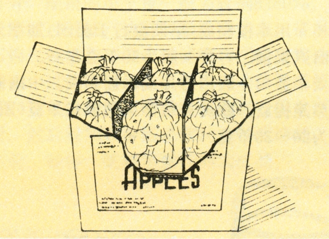 包装果品的纸箱种类很多:有1~2千克的礼品果品箱(盒),容积小,常用单层纸板制作;大纸箱容量一般为15~20千克装,由单层或双层瓦楞纸板制成,空箱抗压力在750~950千克之间。纸有木浆、竹浆和棉杆纸浆多种。纸箱多用于运输包装,国际上果品贸易以纸箱为主。包装的方法,是用白纸直接单果包装,或多果用塑料袋封装,分层放在纸箱内的单瓦楞纸板方格内(图4),纸箱的封装有手工、机械化和自动化3种方式。