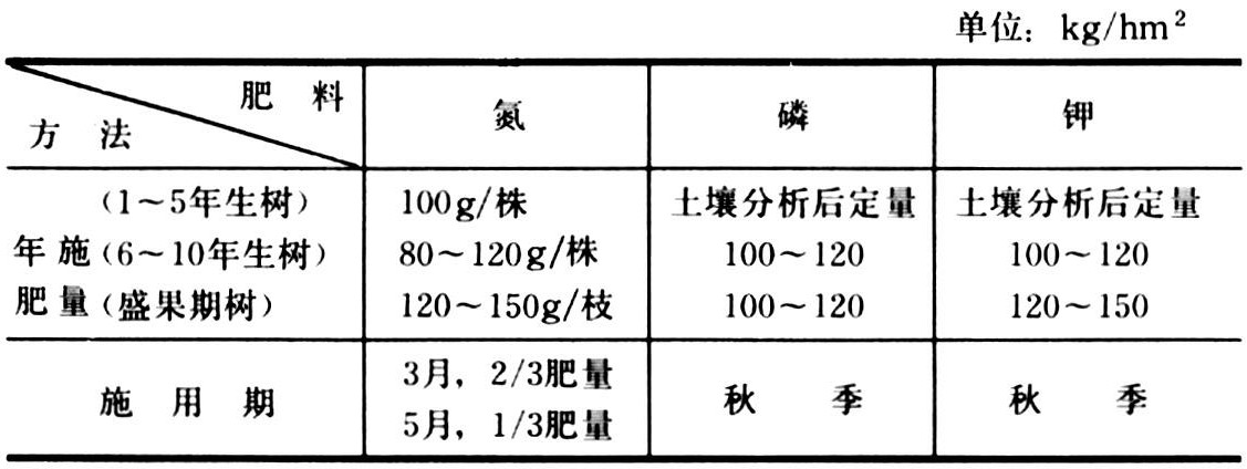 核桃施肥方法可参照上表。