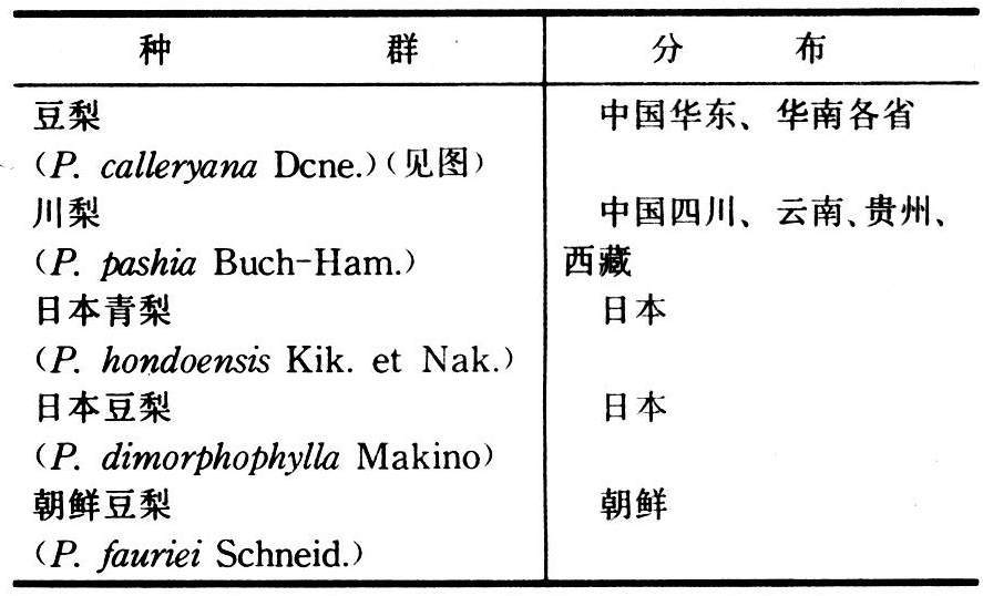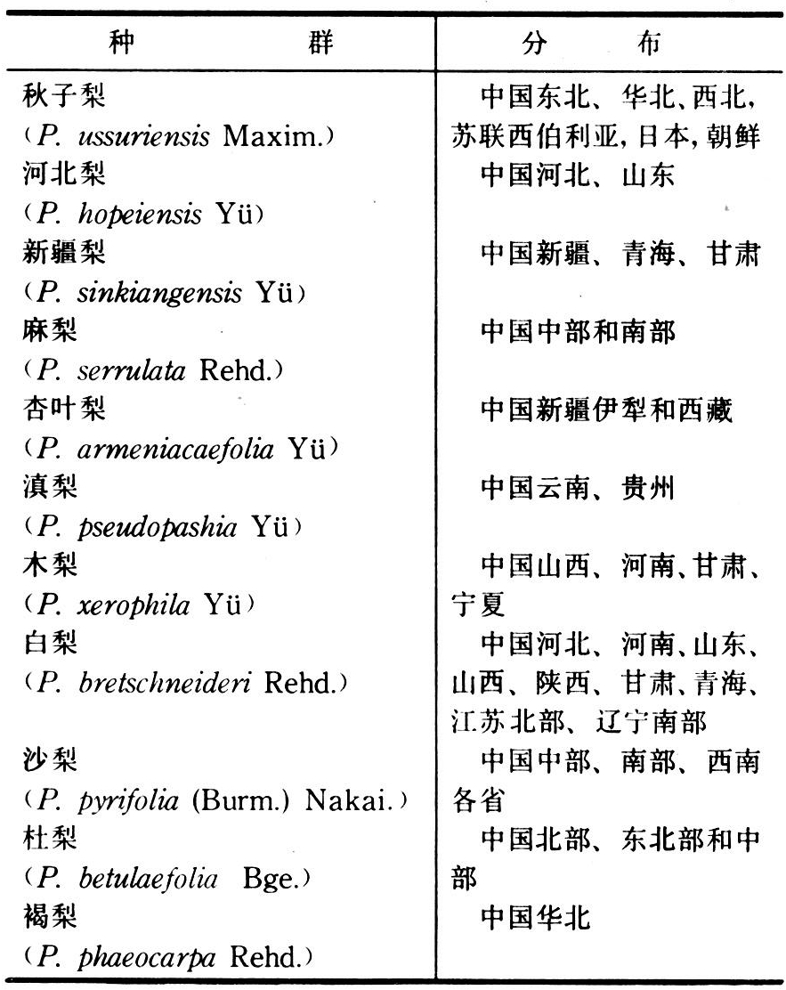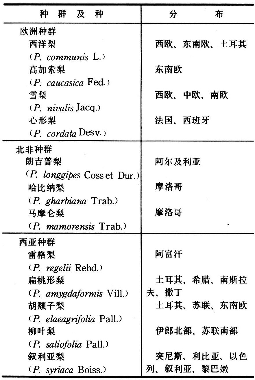 世界梨属植物约有30余种,主要的西方梨系有12种,东方梨系有16种(见表1、2)。