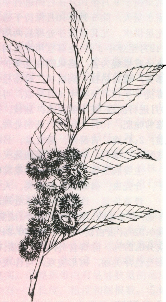 小乔木(见图)。形似野板栗,但不同点是叶型、刺苞、坚果更小,叶背少星毛,呈鳞腺状,总苞瘦,刺束相对细长。坚果重0.7~1.0克,食用价值不如野板栗。树体易衰,少有成高大乔木,分布于秦岭、大别山、庐山及长江中下游地区以南的广大山地丘陵,分布北限较锥栗宽。垂直分布于海拔500米以上,野板栗与茅栗在称呼上极易混淆,造成记载和应用上的混乱。两者能杂交结果,故在两者分布的交接地带,有自然杂种类型存在。茅栗不能用作板栗砧木,一般表现为不亲和。