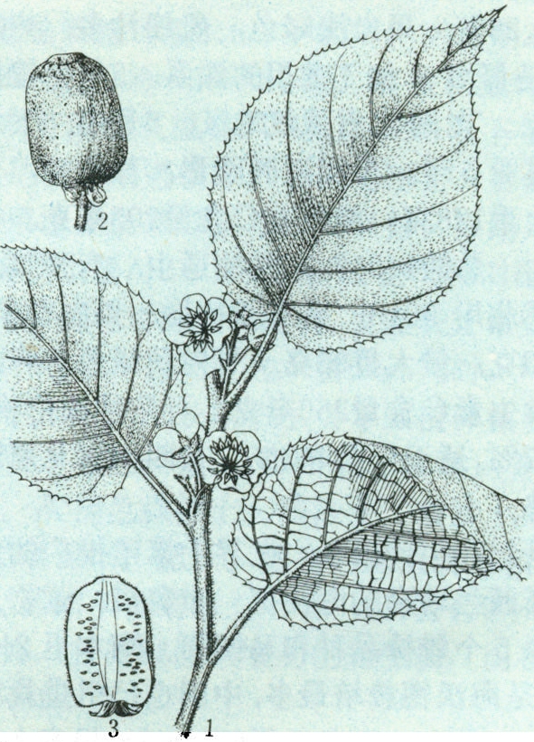 染色体数目2n=2x=58。分布于福建、浙江、广西、江西。果实密被白色长绒毛,状似蚕茧。果实平均重约20.5克,最大果重87克,是一个很有价值的种质资源(见图)。