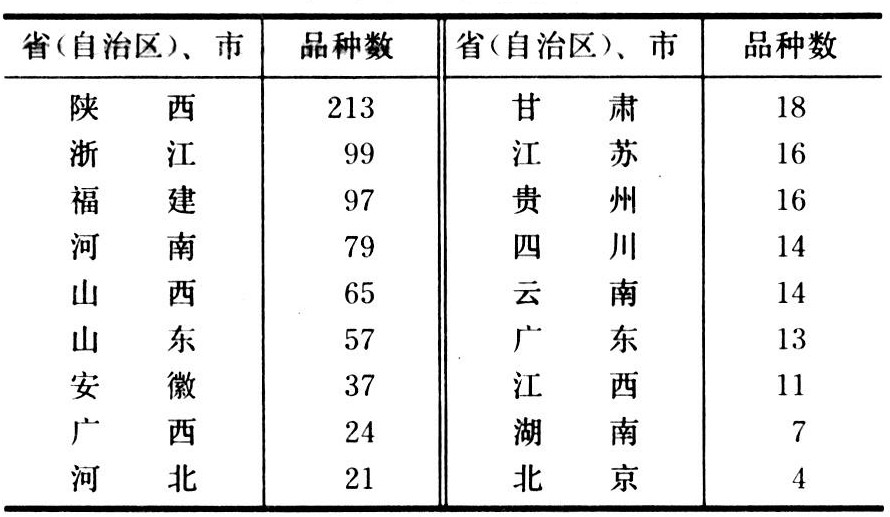 古写作柹。原产中国,已有2000余年的栽培史。现在世界各地广泛栽培。目前长江以南尚有野生柿的分布。在长期栽培过程中形成了许多品种。根据1959年以来各地资源调查,中国现有柿品种864个,在各地的分布见表。