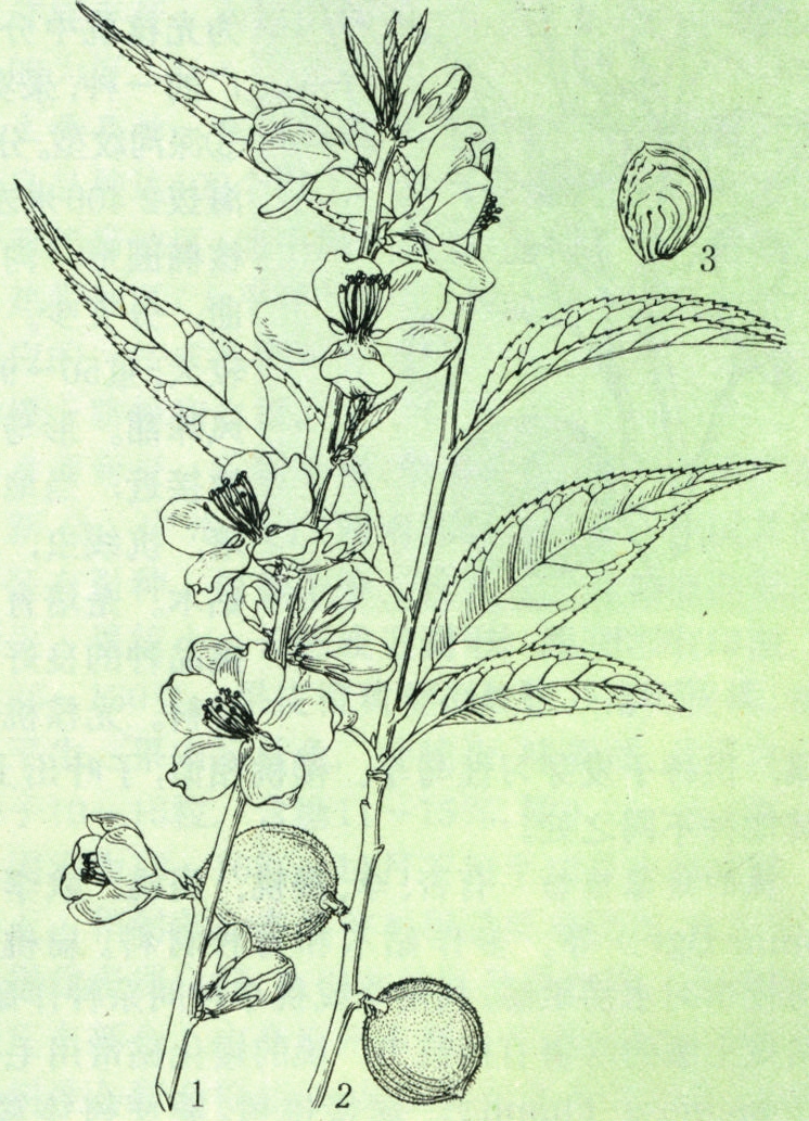 北方桃的主要砧木。抗寒、耐旱、耐盐,与桃亲和力良好。但不耐湿。地下水位高时易罹缺铁黄叶病和根癌病。有白花与红花两个变种。果实球形,直径约3厘米。核近球形,有孔纹和短沟纹(图1)。