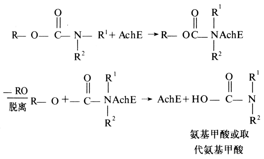 图1 氨基甲酸酯对乙酰胆碱酯酶的抑制反应