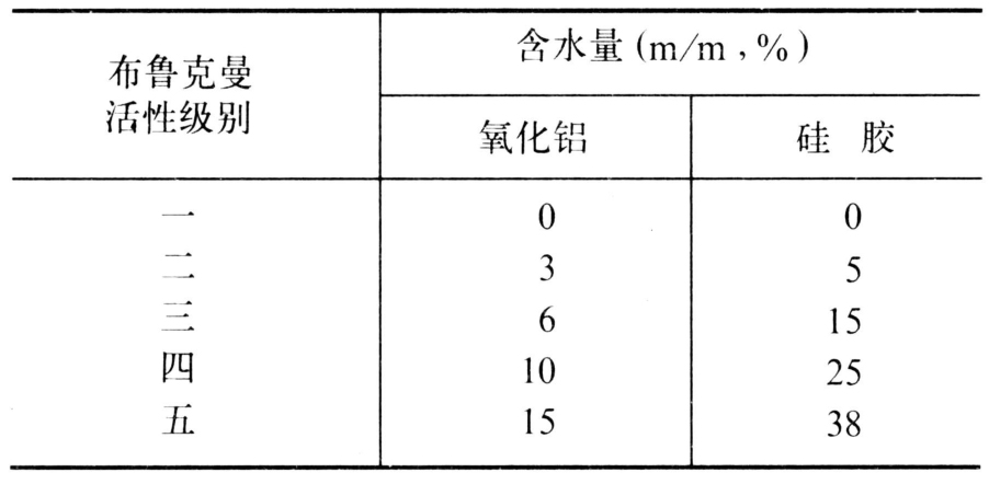 氧化铝和硅胶含水量与活性级别关系