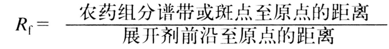式中原点即点加药样的位置,展开剂前沿是指展开剂移动的终止位置。同一农药在相冏条件下的比移值是不变的,可以作为定性的指标。