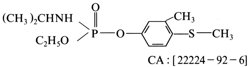 纯品为无色结晶,熔点49.2℃,蒸气压为1.3×10-4帕(30℃);在酸性和碱性介质中缓慢分解,在中性介质中较稳定。原药也为无色结晶,有效成分含量87%,熔点46℃,20℃时溶解度:水中0.4克/升、正己烷中40克/升、氯甲烷和甲苯中大于1200克/升。40℃半衰期31.5小时。苯线磷对高等动物高毒,原药对雌雄大白鼠急性经口LD5010~20毫克/千克。对鱼为中等毒性。