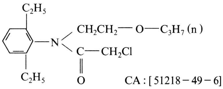 选择性芽前处理、水直播稻田和秧田专用的酰胺类除草剂。又名Solnet、Rifit。其与安全剂CGA123407的混制称为扫茀特(Sofit)。化学结构式: 丙草胺 70年代由汽巴—嘉基(Ciba-Geigy)公司首先开发。性能纯品为无色液体,密度1.076(20℃)