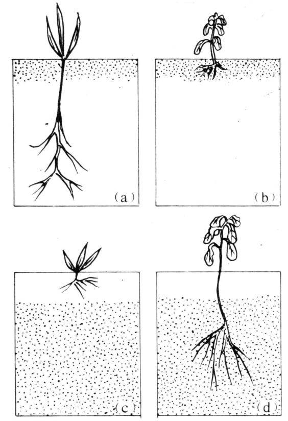 利用除草剂药层分布于土壤不同部位、杂草和作物种子分布于不同层次,达到防除杂草而不伤作物的目的。如有些在土壤中难以移动的除草剂用来作土壤处理时,作物种子萌发的根在土壤深层生长,地上部冲出土壤药层后也能安全生长,而杂草种子在土壤较浅的药层中萌发,接触较多的除草剂而被杀死。有些深根杂草,可用在土壤中易于移动的除草剂,使除草剂到达深层,杀死杂草,而作物在上层可避开除草剂而安全生长(图5)。