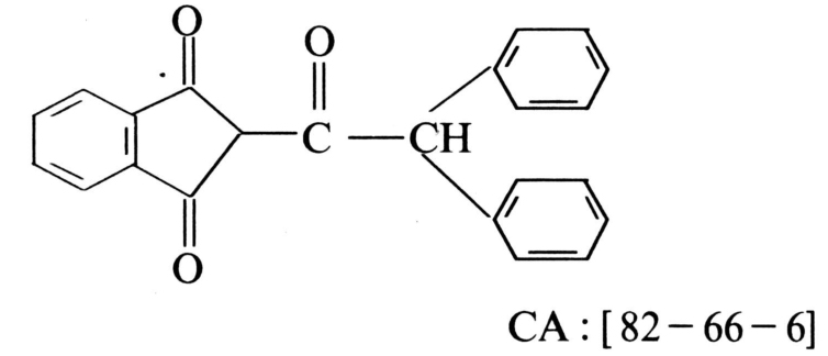 广谱抗凝血茚满二酮类杀鼠剂。化学结构式: