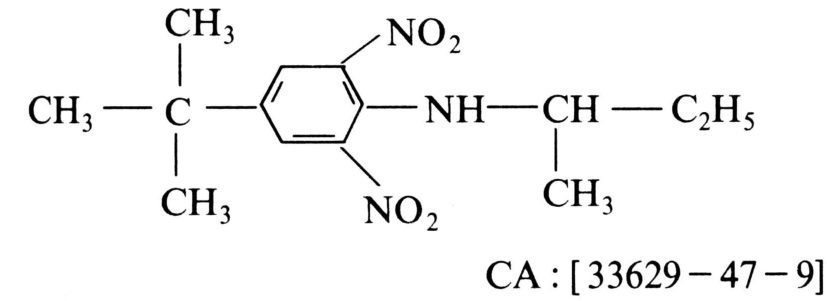选择性苗前二硝基苯胺类除草剂,亦可用作烟草腋芽抑制剂。又名双丁乐灵、地乐胺、Amex、A-820、Linamex、Tamex。化学结构式:
