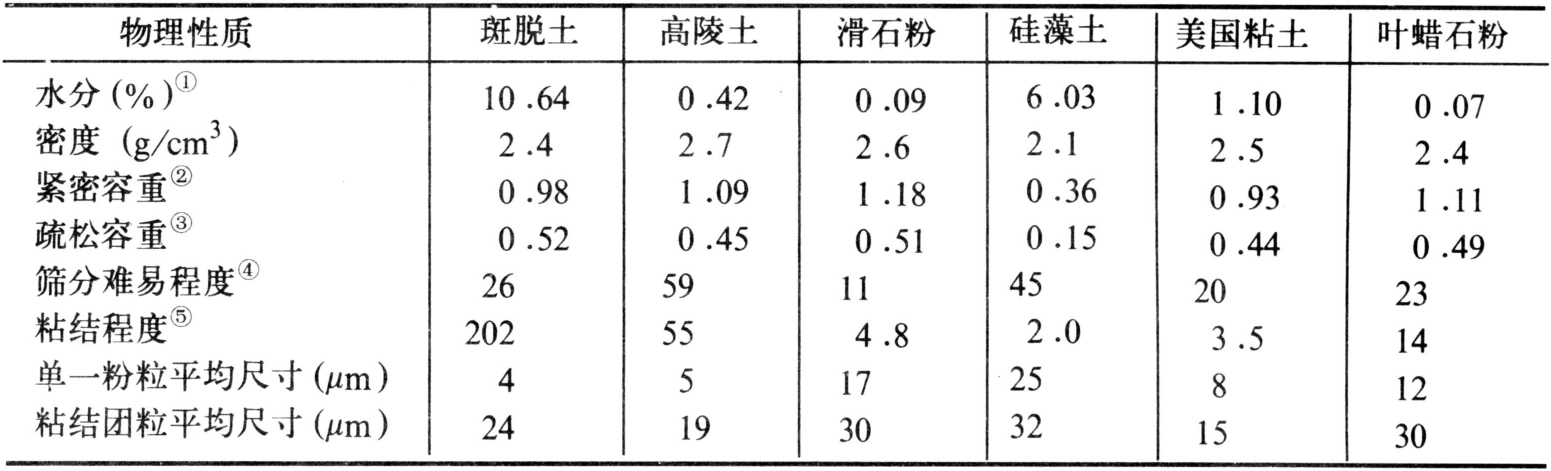 主要有三方面:①粉粒表面产生水膜。这是比较常见的原因。在加工制造过程中因为要烘干,在粉碎时还有气流吹送,所以粉粒表面没有水膜,或仅有痕量的水分。但在包装以后和贮运过程中又可能从空气中吸收水分而重新生成表面水膜。由于水的表面张力使粉粒之间发生凝并,从而产生粘结现象。水分吸收过多时,粉剂就会结块。在包装不良的情况下特别容易发生这种现象。②农药或助剂的粘结作用。粉状制剂中所含的农药或助剂往往具有一定的粘性,特别是熔点较低的农药和蜡状固态农药,比较容易发生粘结现象,尤其在产品堆垛码放期间,由于堆垛重压,更容易发生粘结。所以,制备此类农药的粉状剂型时最好采取浸渗法,即让农药成分浸到载体的表面上的裂隙或凹穴中。或者加入分散剂以减轻粘结。③载体本身的粉粒粘结,是由于载体的微粒之间的凝聚力(cohesion force)所造成的。各种载体粉粒的凝聚力不同,粘结的程度也不同(见表)。可见吸含水分最多的斑脱土粘结程度最高,而硅藻土粘结度最低,滑石粉也很好。有些固体粉粒的粘结性极强。如硫磺的细粉末由于粘结力强,常形成坚硬块状。