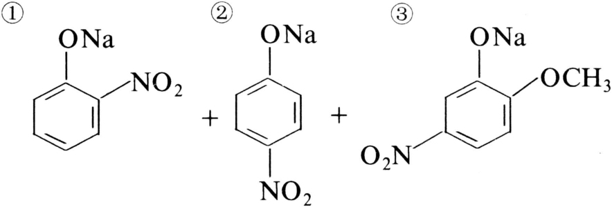 由三种成分组成的复硝酚钠类植物生长调节剂。商品名爱多收、爱丰收、Atonik。化学结构式: