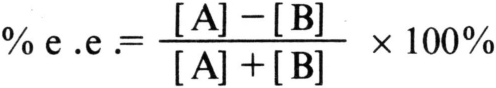 式中 [A]和[B]分别为数量较多和数量较少的两种对映体的量。例如其中一种对映体含量[A]为75%,另一种对映体含量[B]为25%,其%e.e.即为50%。