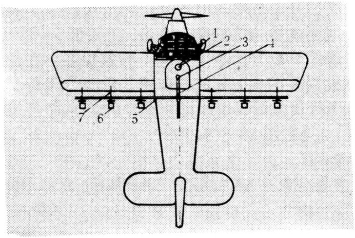 分为常量喷雾与超低容量喷雾两种设备(图1、图2),主要由供液系统、雾化部件及控制阀等组成。供液系统由药箱、液泵、控制阀、输液管道等组成,液剂、粉剂使用同一药箱装载,液泵由风车或电动机驱动。雾化部件由喷雾管与喷头组成,根据不同喷雾要求,可更换不同型号的喷头。飞行员在座舱内操纵喷雾控制阀即可实施喷雾。超低容量喷雾是一种工效很高的喷雾方式,与常量喷雾相比,其喷雾量很小、雾滴极细,可以直接喷洒未经稀释的农药原油。非常适合地域辽阔的大面积农场、牧场、林场喷洒农药。喷雾设备的雾化部件采用高速旋转的盘式或笼式雾化器,其他部件与常量喷雾设备大同小异。