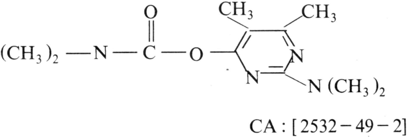 强选择性氨基甲酸酯杀蚜虫剂。商品名称辟蚜雾,化学结构式: