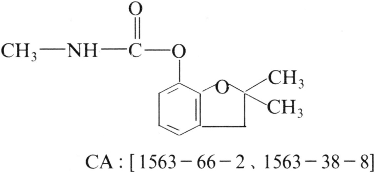 高效高毒的氨基甲酸酯杀虫、杀线虫剂。商品名呋喃丹(Furadan)、大扶农(Diafuran)。化学结构式: