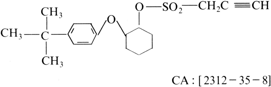低毒高效、胃毒和触杀型丙炔基亚硫酸酯杀螨剂,商品名丙炔螨特、Comite。化学结构式: