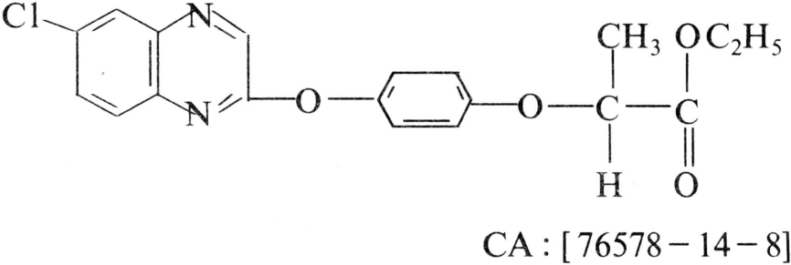 杀禾本科杂草的内吸传导型选择性杂环苯氧酯肟酸类除草剂,又称禾草克、NC-302。化学结构式: 喹禾灵 1979年由日本日产(Nissan)化学公司首先开发成功。性能纯品密度1.35(20℃),熔点91.7~92.1℃,沸点220℃。20℃时在水、丙酮、二甲苯中的溶解度依次为0.3毫克/升、110克/升和120克/升。原药有效成分含量不低于97%,正常条件下贮存稳定。低毒。