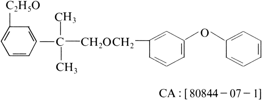 对鱼类等水生生物低毒、分子中无酯结构的醚类拟除虫菊酯杀虫剂,因其空间构型与拟除虫菊酯有相似的地方,所以将其归于合成拟除虫菊酯杀虫剂。商品名称和其他名称有多来宝、苄醚菊酯、Trebon、Ethofenprox等。化学结构式: