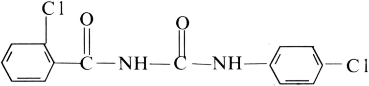 苯甲酰脲类几丁质合成抑制剂。又称苏脲1号或灭幼脲3号。化学结构式: