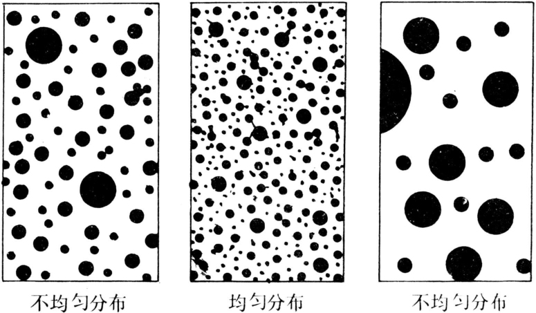 须从两个方面进行评价:①生物效果评价。在施药后,对病、虫、杂草等有害生物控制情况,可直接评价所选施药方法的实际防治效果。但防治效果还与药剂种类、剂量、防治时机等其他因素有关,应在其他条件相同的情况下,对不同的施药方法作出评价。②物理指标。主要包括:在靶标上的农药沉积量和回收率、覆盖率及分布均匀性。农药沉积量是指喷药后每单位面积靶标上沉积的药剂量,用微克/厘米2表示,它是保证生物学效果的主要因素。农药回收率是指沉积在靶标上的药量占总施药量的百分率。农药回收率高,表示所喷农药在靶标上的沉积效率高,飘失或流失的比例少,作业质量好,可通过农药测定或用示踪物质(如荧光剂或染料等)代替农药,用荧光分析仪或分光光度仪等测定沉积量和计算回收率。药剂的覆盖率是指施药后,靶标上覆盖药剂的面积与靶标总面积之比,也是保证生物学效果的重要指标。其值依药剂的性质、防治对象和药剂的剂型而定。防治病害,喷施杀菌剂时,对此指标要求比较高。农药的防治效果还与农药在靶标上分布是否均匀有关。如图示,在同样覆盖率情况下,药剂分布均匀的,其防治效果一定优于分布不均匀的。细小而均匀的雾滴(或粉粒),能得到良好的施药效果。通过检查单位面积内的药剂覆盖密度(粒/厘米2)(见),可评定其施药质量。(见彩64~68)