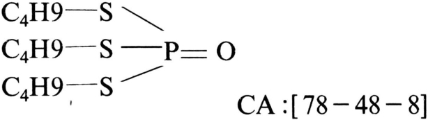 一种有机磷植物生长调节剂,商品名赛苯隆、敌夫,DEF、。化学结构式: 脱叶磷 1956年由美国乙基卡特甫(Ethyl Cotp)公司开发。性能浅黄色液体,带硫醇臭味,熔点-25℃,0.3毫米汞柱压力下沸点150℃,密度d201.057,d271.148,折光率n25D1.532,溶于脂肪族烃、芳香烃和氯化氢等有机溶剂,不溶于水,对酸和热稳定,遇碱分解。