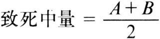 毒力大小以致死中量表示,其计算方法可根据每个剂量(或浓度)处理试虫的多少而异,主要有两种:①如用5~6个系列剂量(或浓度)分别处理一定数量的试虫(30头左右),可得出各剂量(或浓度)的相应死亡率,由剂量对数死亡机率值直线求出;②不同的剂量分别处理一定数量试虫、整个试验所用试虫约60~80头,须逐个称重单独饲养,求出每头试虫的取食药量,换算出每克昆虫体重的吞食药量,24小时或48小时后观察记录试虫的死活情况。致死中量的计算是根据每克虫体重吞食药量多少与试虫死活情况,顺序排列,可分成死亡组、中间组、生存组。死亡组与生存组的试虫全死或全活,均不参与计算,只从中间组中分别算出生存的个体及死亡的个体各自平均吞食药量,以A及B表示,两者平均数即为致死中量(微克/克)。