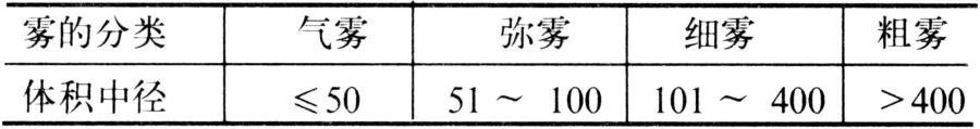 中华人民共和国国家标准(GB6959-86)中,对雾滴尺寸的分类规定如下表。