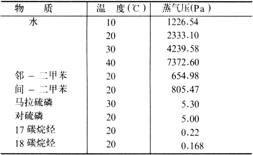 表1 水、有机溶剂和某些农药的蒸气压