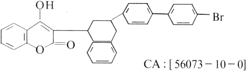 原药为灰白色或淡黄褐色粉末,熔点228~232℃。25℃时蒸气压<0.13毫帕。20℃时溶解度(克/升):水<0.01(pH7),苯<0.0006~0.006,丙酮6~20,氯仿3。显弱酸性,不易形成水溶性盐。正常贮存条件下稳定。工业品是顺式和反式两种异构体的混合物。两种异构体活性和适口性无差异。剧毒,但无胎毒和致癌性,在体内无积累作用。因毒饵浓度很低,常规用法对鸟类影响很小,对鱼类安全。急性口服LD50(毫克/千克):雄大鼠0.27,雄小鼠0.4,雌豚鼠2.8,猫约25,狗0.25~1.0,鸡4.5,野鸭2.0。急性经皮LD50大鼠50毫克/千克。96小时LC50:蓝鳃太阳鱼0.165毫克/升,虹鳟0.051毫克/升。能防治对第一代抗凝血剂产生抗药性的鼠。活性高,兼有急性和慢性两种杀鼠作用,0.005%毒饵一次投放,可消灭各种家鼠和野栖鼠。适口性好,鼠无拒食现象。